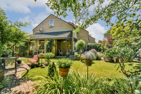 De ruime achtertuin, gelegen op het noordwesten, is netjes aangelegd en heeft veel ruimte en biedt voldoende privacy.